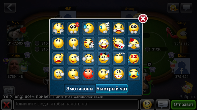 *Быстрый чат и выражение эмоций с помощью смайлов