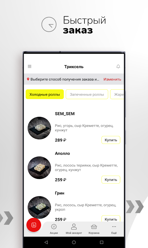 Dalam aplikasi kami, anda boleh membuat pesanan pada bila-bila masa. Anda boleh mengambilnya sendiri atau kami akan menghantarnya dengan segera atau pada masa yang dipilih. Anda boleh membayar untuk pesanan anda selepas menerima atau dalam apl.