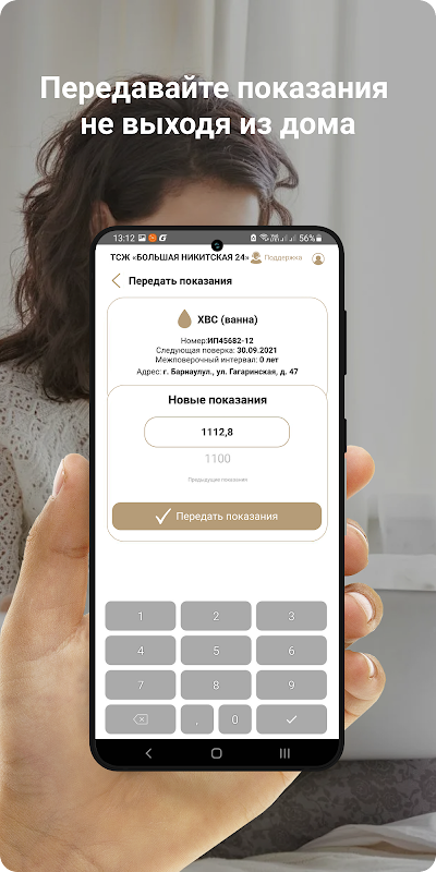 Просто введите в мобильный текущие показания приборов учета. И вся информация автоматически попадет в УК, ТСЖ