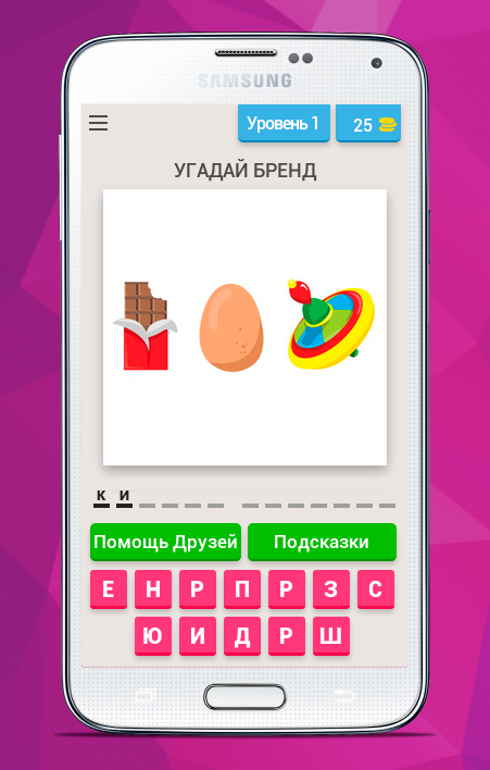 Посмотри на смайлики и отгадай слово, которое их объединяет. Это может быть бренд, напиток или просто любимый продукт. Впиши название вкусняшки выбрав нужные буквы и заработай монеты, а если не можешь вспомнить товар, воспользуйся подсказками или попроси помощи у друзей, угадайте еду вместе.
