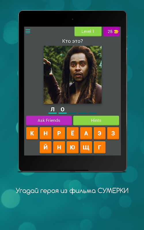 Викторина по всеми известному фильму Сумерки. В которой вам нужно будет угадать героев. В игре взяты не все персонажи. На данный момент 37 уровней. Остальные будут добавляться поэтапно.