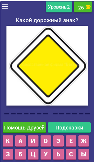 Правила как всегда мега простые: на каждом уровне вам показывается картинка на которой загадан дорожный знак. Он может быть любой из ПДД. Вам нужно из имеющихся букв подставить правильное слово и тем самым пройти уровень!