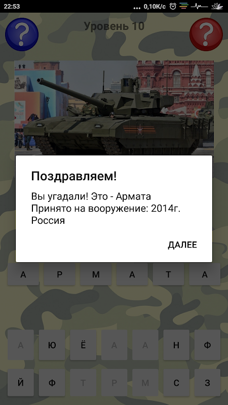В приложении представлено большое количество оружия разных государств и эпох. В конце каждого уровня отображается интересный факт о разгаданном оружии. Отгадай их все и будь настоящим экспертом в вооружении стран мира!