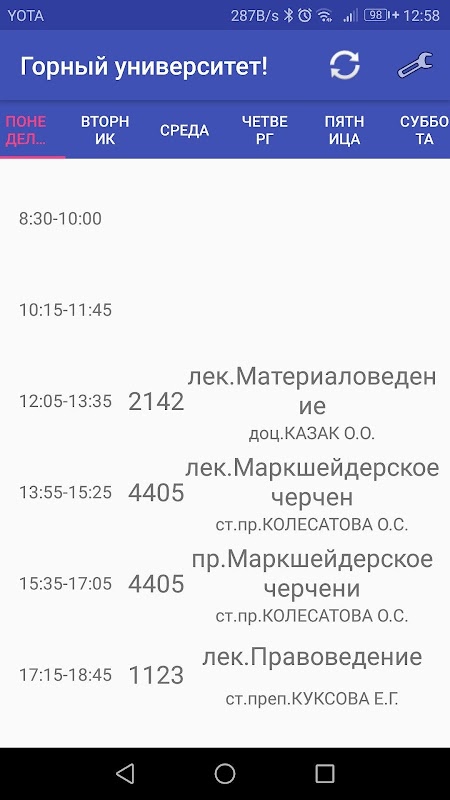 Приложение с расписанием занятий Уральского Государственного Горного Университета.