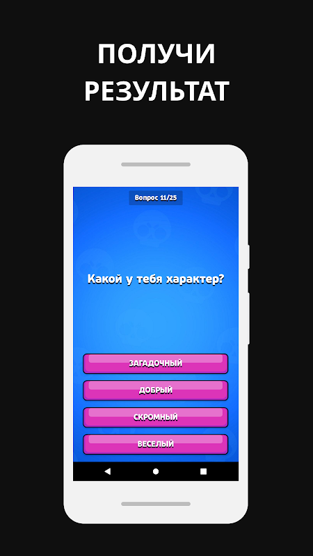- Приложение предназначеное только для развлекательных целей, чтобы проверить на какого персонажа из Бравл Старс вы похожи