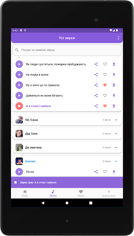 Koleksi frasa dan bunyi daripada meme internet popular Ukraine pada peranti anda.