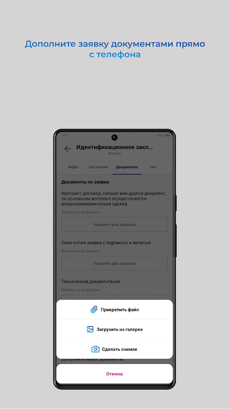 Aplikasi mudah alih membolehkan anda membuat dan mengedit aplikasi untuk pengeluaran kesimpulan pengenalan, permit dalam bidang kawalan eksport.