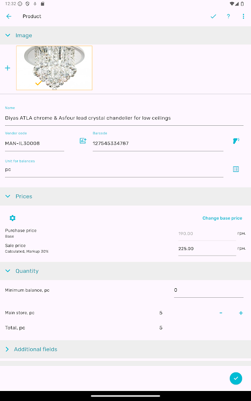 Produk disimpan dalam senarai hierarki yang mudah dengan keupayaan penapisan dan carian. Kad produk membenarkan merekodkan kod item, kod bar, imej dan penerangan. Untuk menyelaraskan proses menerima barangan di gudang dan carian seterusnya, program ini membolehkan kamera peranti digunakan sebagai pengimbas kod bar.