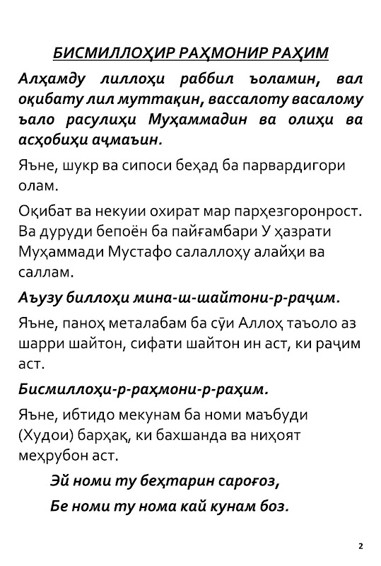 BAONI VOҶIBOTI HOS DAR Namozov BAONI SUNNATҲOI OM DAR Namozov BAONI SUNNATҲOI HOS DAR Namozov BAONI MUFSIDOTI Namozov RAKAATҲOI Namozov SHABONARӮZӢ chuunin AST VAҚTҲOI Namozov TARTIBI Namozov HONDAN takbirs TAҲRIMA ҚIOM OGOҲ SANO surah FOTIҲA surah ASR RUKӮ SAҶDA surah Kawthari ҚADA TASHAҲҲUD SALAVOT DUO Duoi ҚUNUT DUO VA TASBIҲOTI BADI NAMOZ DUOI RAMBUT AZ SURAҲOI ҚURONI KARIM. Surah FOTIҲA surah ACP surah PHIL surah ҚURAYSH surah Moun surah Kawthari surah Kofirun surah NASR surah Masada surah IHLOS surah FALAҚ surah FNL OYATALKURSӢ khatam ҚIROAT Duoi Badi ҚIROAT AMALҲOI MASHRӮ VA ҒAYRI MASHRӮ NAMUDҲOI Farz VA Sunnatov ҲAROM MAKRӮҲ MUFSID Farz HILOFIYA VAҚTҲOI ҲAROM VA MAKRӮҲ SAҶDAI SAҲV SAҶDAI TILOVAT NAMOSI Ҷ UMАA NIYATI NAMOSI Ҷ UMАA Niyati ЗNAMOZI GO RAMASON TAKBIRI TASHRI Қ NAMOZI KANOZA TASBҲI RAMAZON CHIL FAROZI FAROISI RZӮZIOZ ЗАZIOZЗА FAROISI Ғ USL NIYATI Ғ USL AMALҲOI SALTҲ DUOI BADI TAOM AGAR PURSAND, KI ... AFZALI DUO