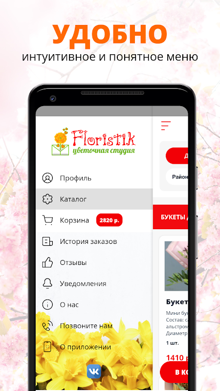 Gunakan aplikasi mudah untuk memesan bunga "Floristik".