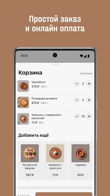 Permohonan yang mudah untuk penghantaran dari restoran "Khachapuri and Wine"