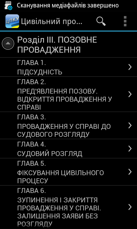 Програма Цивільний процесуальний кодекс України містить повну версію Цивільного процесуального кодексу України зі всіма змінами та доповненнями.