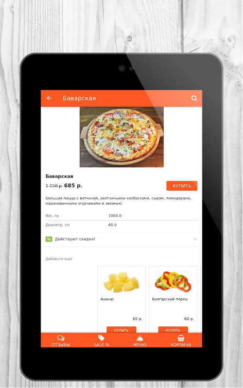 - Lebih daripada 30 jenis pizza! Dan shawarma berair, pai Ossetia, pencuci mulut dan makanan ringan!