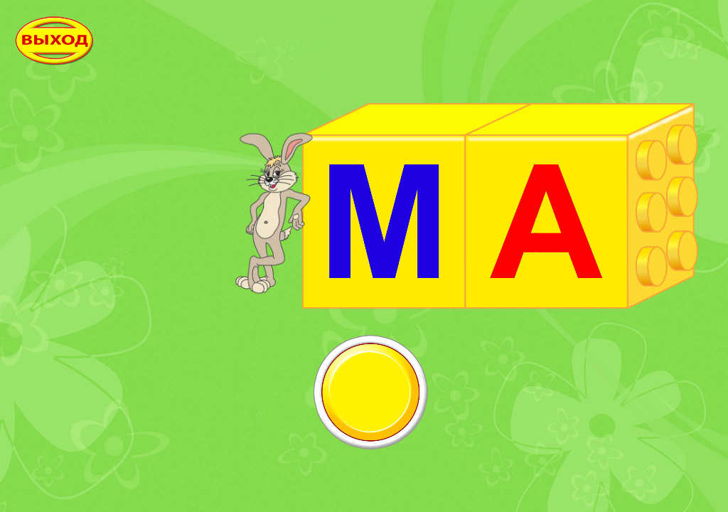Permohonan untuk belajar membaca suku kata. Kanak-kanak itu ditawarkan untuk meletakkan dua huruf suku kata terbuka dan tertutup. kiub pergerakan animasi dengan surat dicat pada ia membantu kanak-kanak belajar untuk menyebut huruf tidak dua berasingan dan bersatu suku kata.