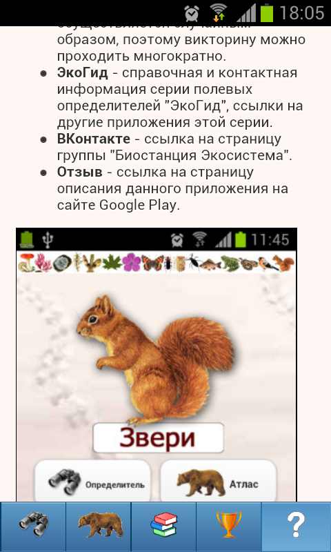 Бесплатная демонстрационная версия мобильного полевого определителя наземных млекопитающих (зверей) и следов их жизнедеятельности "ЭкоГид: Звери и Следы".