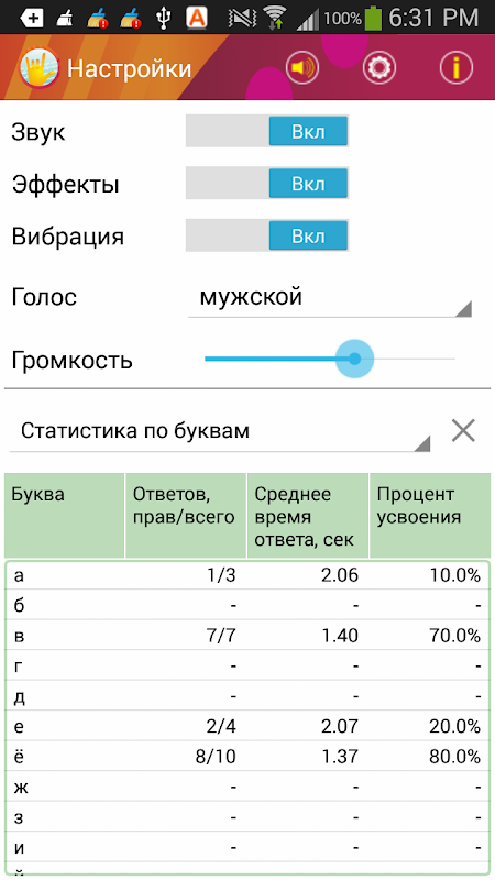 Jawapannya adalah dalam permainan dikira betul, jika ia diberikan dalam masa kurang daripada 5 saat, dan surat itu dianggap sebagai yang berilmu, jika yang terakhir 20 dihantar kepada surat ini - yang setia. Lihat bahagian statistik tetapan program.