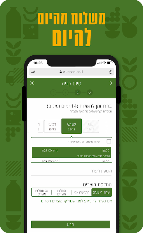 Pasar raya Gan Shmuel Stall menawarkan daging dengan daging berkualiti dari Dabah Butchery, pastri segar, deli, jabatan alam dan kesihatan yang sangat kaya (produk bebas gluten, produk organik, produk vegan dan produk bebas gula (dan pelbagai produk super dihantar ke rumah dari hari ke hari.