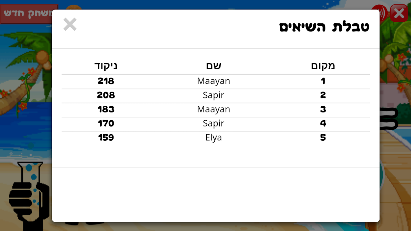 ילדים שירצו להוסיף מעט תחרותיות לעניין יהנו מהאפשרות של משחק תחרותי (משחק על זמן) בו לזמן סיום הפאזל ימדד ותהיה להם אפשרות להירשם בטבלת השיאים הארצית שלנו.