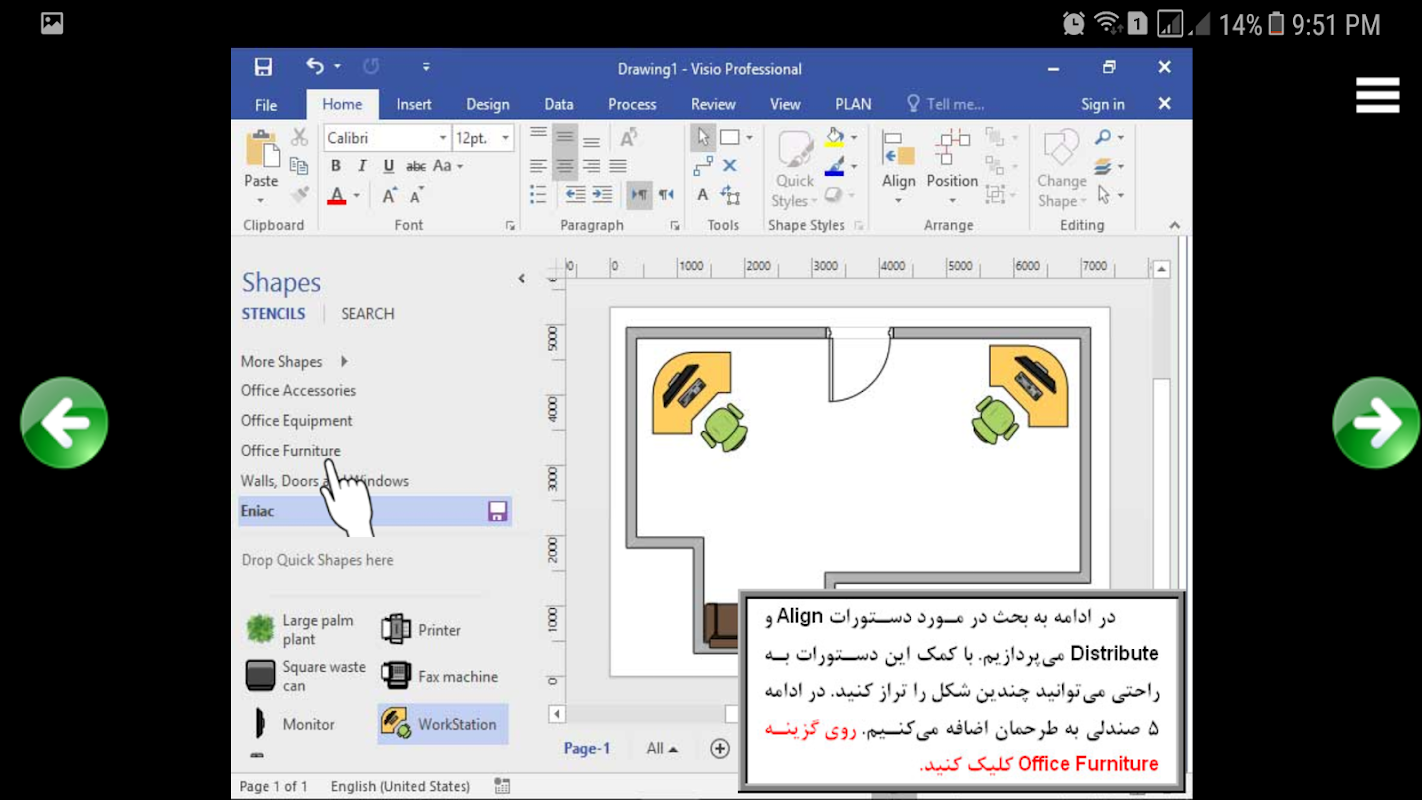 Training Visio 2016 suara sebagai interaktif dan teks Farsi - bab pertama, kedua dan ketiga - percuma