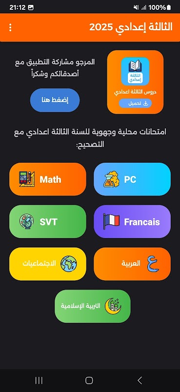 Aplikasi ini menyediakan kandungan pendidikan, termasuk peperiksaan lepas yang diterbitkan oleh Kementerian Pendidikan di Maghribi, yang boleh didapati secara percuma dalam talian di tapak seperti: (www.moutamadris.ma) dan (www.alloschool.com) .