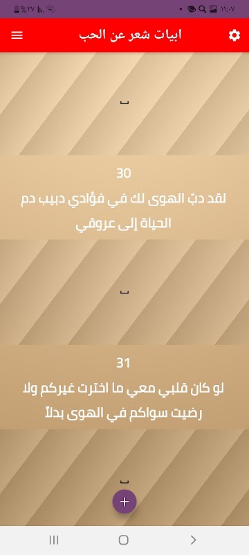 يحتوي التطبيق على أكثر من ٥٠ بيت من اجمل الأشعار عن الغرام لمختلف الشعراء