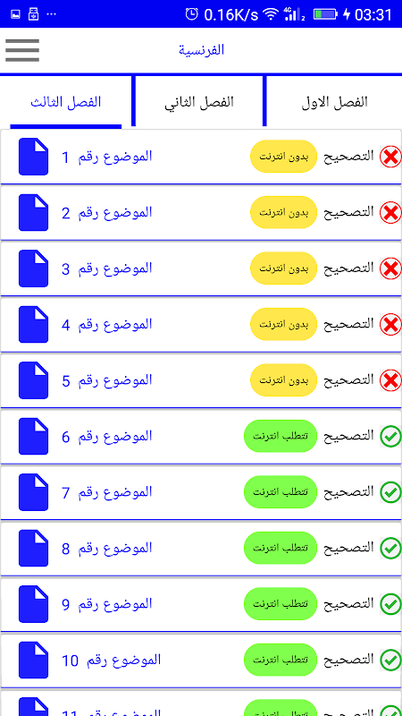 يمكن تصفح كل من ما سبق في وجود الاتصال بالانترنت ويمكن تحميل المواضيع والدروس داخل التطبيق لتصفحها برنت انت