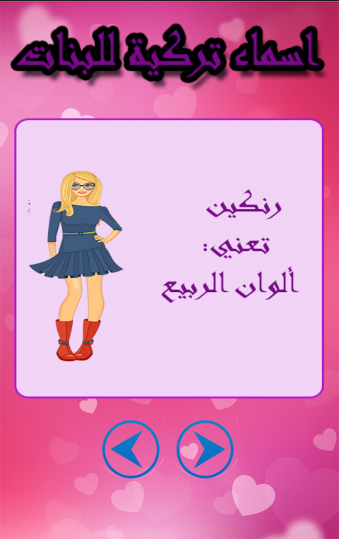 نقدم لكي اختي الكريمة اجمل اسماء بنات تركية و نقدم لكي ايضا جملة اسماء بنات مزخرفة التطبيق عبارة عن اسما بنات على صور داخل خلفيات مكتوب عليها الاسماء و يضم التطيق اروع المعاني واجمل بنات تركيا نادرة وحتوي التطبيق على اكتر من 48 اسم تركي و اكترها شهرة من مسلسلات تركية من حلقات مسلسل سامحيني لتسهل عليك تعارف بنات تركية و بنات المغرب للاسماء اجمل بنات العالم .