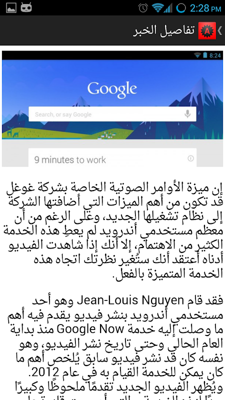 Program ini membentangkan Android berita terkini dan bahasa Arab secara langsung daripada laman Android Arab.