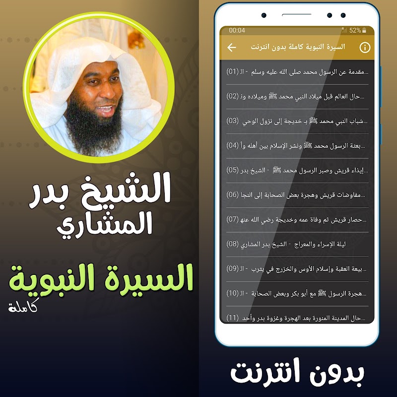 Aplikasi yang komprehensif dan tersendiri yang mempersembahkan biografi lengkap Nabi Muhammad (saw) dalam gaya yang menarik dan ringkas, dibacakan oleh Syeikh Badr bin Nader Al-Mashari, salah seorang pendakwah dan pemidato yang paling terkenal yang terkenal dengan gaya fasih dan persembahannya yang tersendiri.
