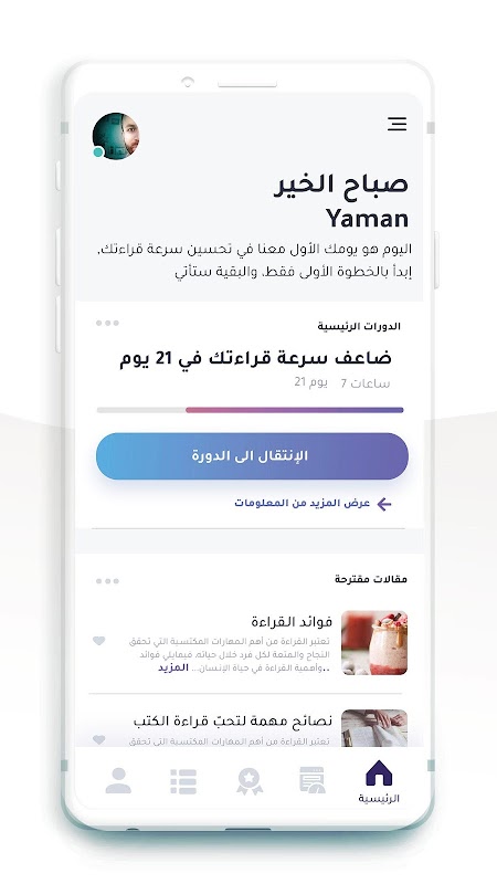 Aplikasi ini juga mengandungi kursus sistematik yang membolehkan pembaca meningkatkan kelajuan pembacaannya dalam 30 hari, melalui susulan harian kumpulan latihan dan latihan.