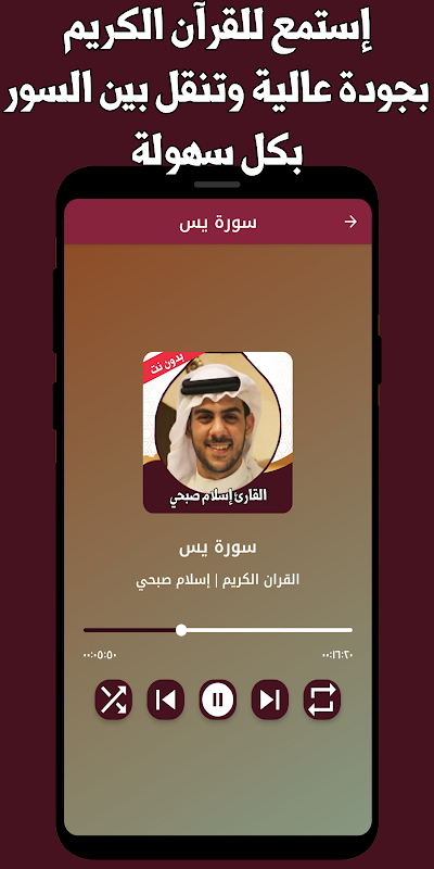 Selepas melengkapkan pemasangan aplikasi, buka dan dengarkan surah-surah Al-Quran dengan Sheikh Islam Sobhi dalam bacaan berkualiti tinggi dalam format mp3.