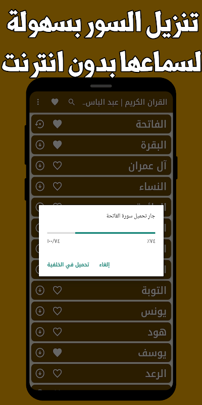 Melalui aplikasi ini, anda boleh mendengar Al-Quran Noble dengan suara Abdul Basit Abdul Samad tanpa jaring, dan aplikasi bacaan Al-Quran dicirikan oleh suara Abdul Basit Abdul Samad secara percuma, dan anda boleh memuat turun Al-Quran. aplikasi dengan suara Abdul Basit Abdul Samad dengan mudah supaya anda dapat menikmati bacaan Al-Quran dengan suara Sheikh Abdul Basit Abdul Samad di mana sahaja anda mahu dan pada bila-bila masa anda mahu, dan kami juga merancang Al-Quran program Abdul Basit Abdul Samad tanpa jaring agar mudah digunakan dengan antara muka yang ringkas dan satu siri dengan semua keupayaan yang diperlukan untuk membantu anda menggunakan aplikasi, dan juga pagar tersedia dalam suara berkualiti tinggi.