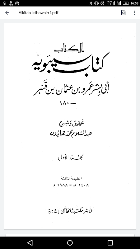Tajuk buku: Kitab (Kitab Sibawayh) Pengarang: Sebawayh Penyiasat: Abd al-Salam Harun