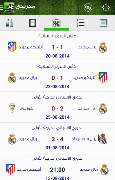 تابع اخر الاخبار، جداول مباريات، كليبات الأهداف، النتائج، بث الاحداث والعديد من انواع المحتوى تم تطويره ونشره من قبل فريق عمل التطبيق الذي يعمل بشكل متواصل على تقديم افضل محتوى عربي يغطي ويلبي شغف مشجعينا العرب لعملاقي الكرة الاسبانبة