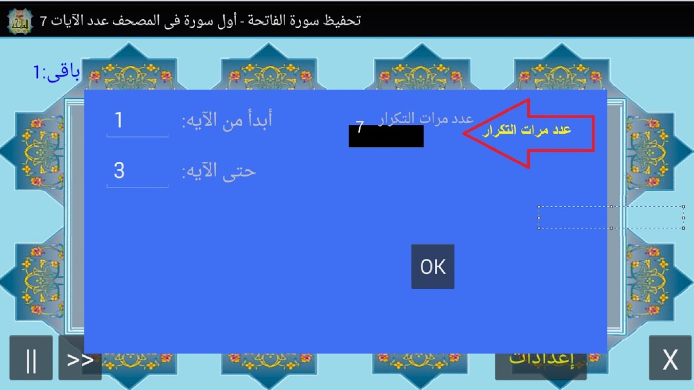 Pilih bilangan ulangan bacaan daripada 1 hingga 7 kali