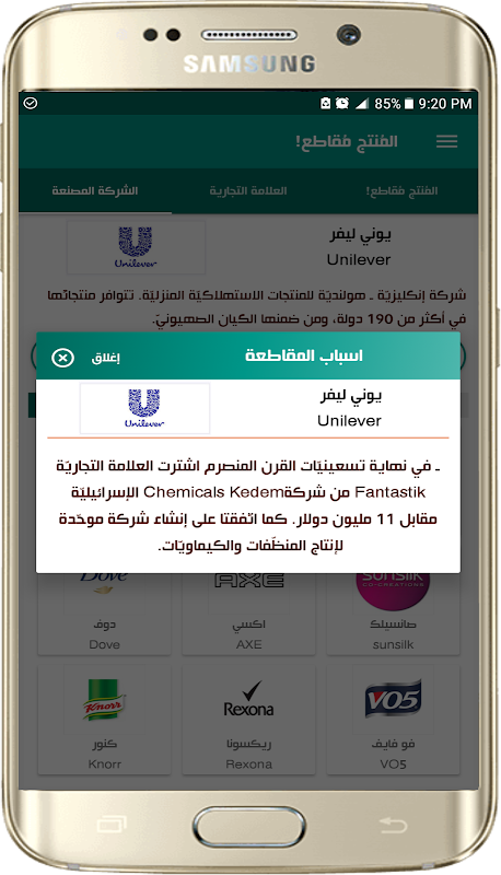 2. يقوم البرنامج بعرض المعلومات المتوفرة عن الشركة المقاطعة وملاكها ودعمها لإسرائيل ؟؟.
