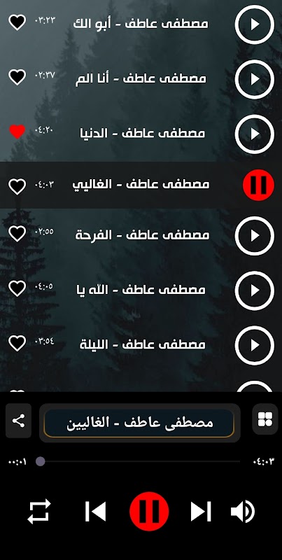 1- Aplikasi ini termasuk perpustakaan lagu dan lagu Mustafa Atef yang pengguna boleh dengar dan kongsi dengan rakan-rakan.