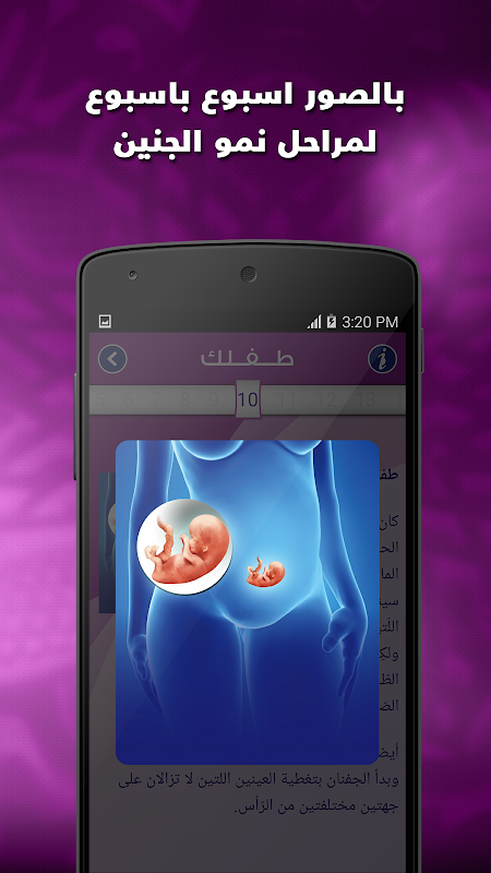 Setiap minggu kehamilan, aplikasi ini menyediakan kemas kini terperinci tentang perkembangan janin, seperti anggaran saiz dan beratnya, serta penjelasan tentang perubahan yang mungkin berlaku pada tubuh ibu. Pengguna boleh menjejaki kemas kini ini secara berkala, yang membantu dia memahami perkara yang berlaku pada setiap peringkat kehamilan.