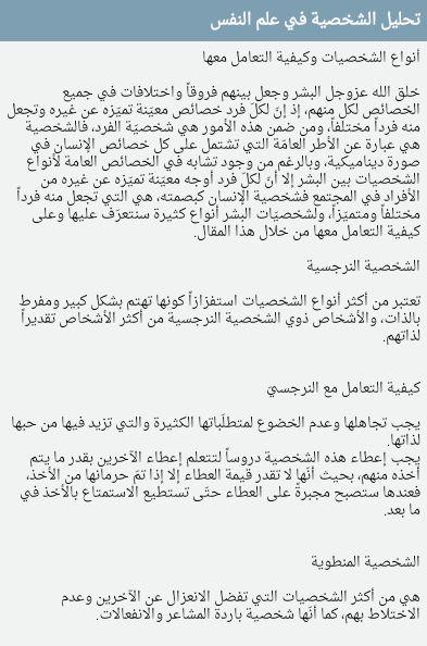 تطبيق تحليل الشخصية في علم النفس ممتع يجمع مئات الاختبارات النفسية يمكنك من التعرف على شخصيتك و معرفة الجوانب الايجابية و السلبية منها بطريقة علمية فهو محاولة مبسطة لتفادى الانماط السيئة التى تمارسها دون ان تعلم الاختبارات مترجمة من الانجليزية بلغة مبسطة لتناسب كل الفئات و عليك الاجابة عن الاسئلة بمنتهى الصراحة لتعرف نفسك و شخصيتك الحقيقية سيتم اضافة المزيد من الاختبارات بصورة دورية لاتترد فى ارسال اى اقتراح الينا. شارك التطبيق مع اصدقائك لمساعدتهم على معرفة نقاط قوتهم و نقاط ضعفهم و مميزاتهم وعيوبهم.