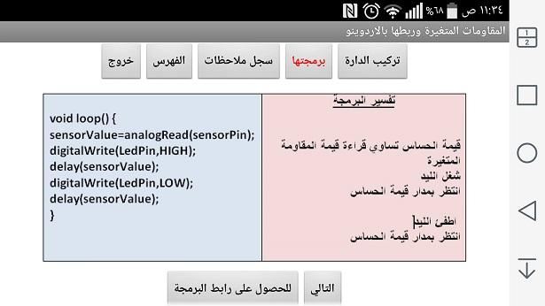 تم تصميم هذا التطبيق لتعلم الأردوينو من الصفر حتى تصميم مشاريع بسيطة ، هذا التطبيق سهل الاستخدام ويحتوي على تفاصيل توصيل الدارات خطوة خطوة، كما ويحتوي على روابط لتحميل البرمجة على جهاز الحاسوب.