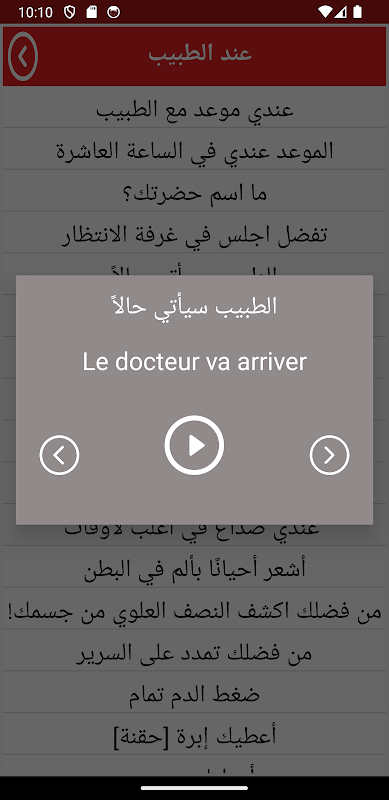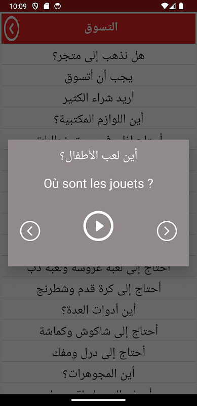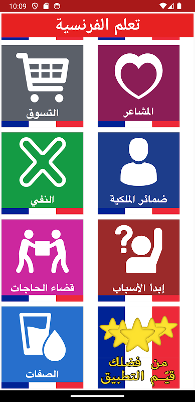 Aplikasi ini mengandungi kumpulan terbesar ayat untuk bercakap dalam bahasa Perancis, kira-kira 2000 ayat untuk bercakap dalam bahasa Perancis di semua tempat yang perlu dan awam atau di tempat-tempat persendirian juga.