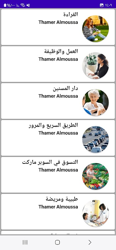 Penerangan pelbagai gambar dengan terjemahan ke dalam bahasa Arab untuk mengembangkan kosa kata.