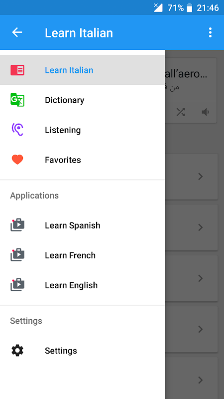 Speaking and learn the Italian language and sound Atofferaly Arabic translation Italian without Internet