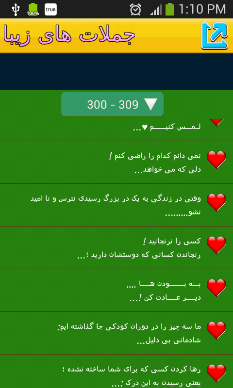 حالا شما می توانید با دوستان خود کلمات زیبا در تمام شبکه های اجتماعی به اشتراک بگذارید و آن را از طریق تلفن ارسال