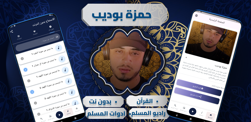 Al-Quran Hamza Boudib Al-Qur'an tanpa Net Bagi pencinta Al-Quran, mereka boleh mendengar Al-Quran sebagai tambahan kepada ruqyah yang sah Kami juga menyediakan bahagian khusus untuk mendengar Al-Quran 'Radio Hamza Boudib MP3 Offline, dan Sheikh Hamza Boudib membaca Al-Quran dengan riwayat Warsh atas kuasa Nafi' dalam kualiti tinggi dan tanpa internet melalui aplikasi.