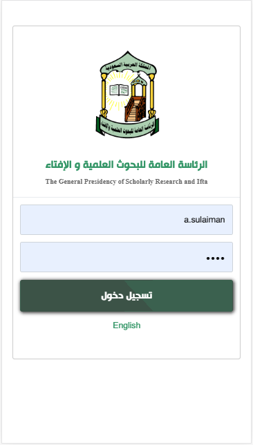 تطبيق خدمات الموظفين الرئاسة العامة للبحوق العلمية والافتاء للعمل عن بعد والتي تتضمن خدمات كاملة للموارد البشرية والمالية.