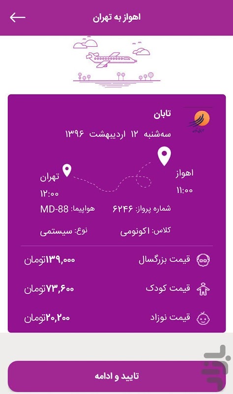 امکان فیلتر نتایج جستجو بر اساس کلاس پرواز اکونومی و بیزینس
