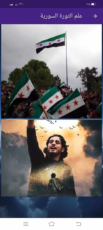 Terdapat banyak gambar dalam aplikasi bendera Revolusi Syria, dan gambar-gambar itu dicirikan oleh kesucian dan merupakan gambar HD