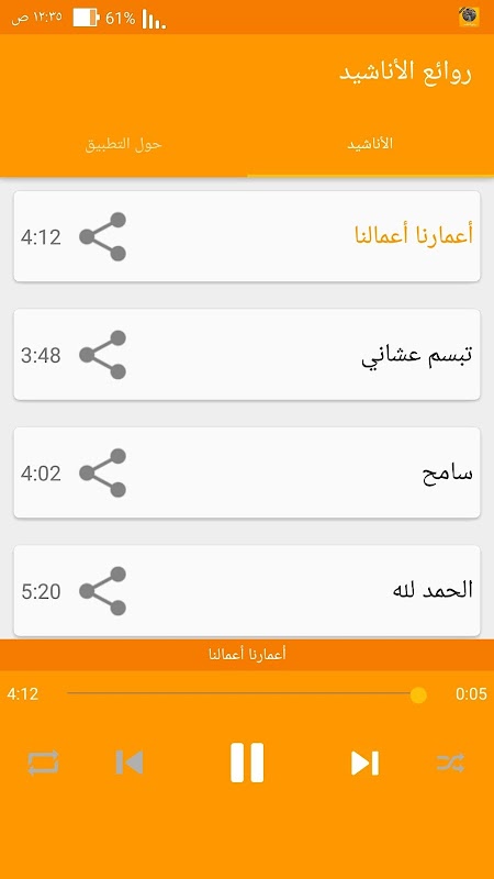 يحتوي التطبيق على أناشيد إسلامية رائعة لا تحتاج الإتصال بالإنترنت ..