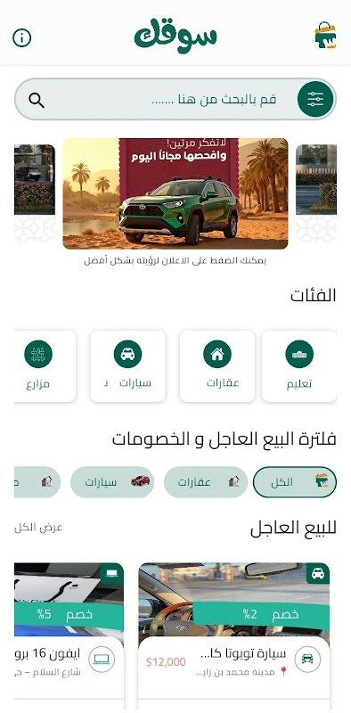 Adakah anda sedang mencari platform bersepadu dan mudah digunakan yang menyediakan pasaran yang luas dan pelbagai untuk hartanah, kereta dan ladang? Aplikasi Souqak ialah penyelesaian yang sempurna untuk anda! Sama ada anda seorang penjual yang ingin menjangkau segmen terbesar pembeli, atau pembeli yang mencari tawaran dan tawaran terbaik, Souqak menawarkan anda pengalaman luar biasa yang menggabungkan kepelbagaian, kemudahan dan keselamatan.